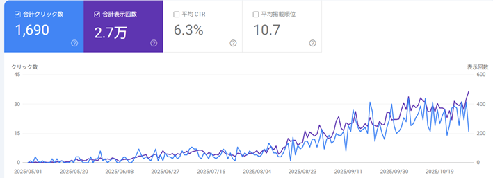 本格的にブログ運営を開始した時期から起算し、半年間として(2025年5月~2025年10月)記録をまとめています。