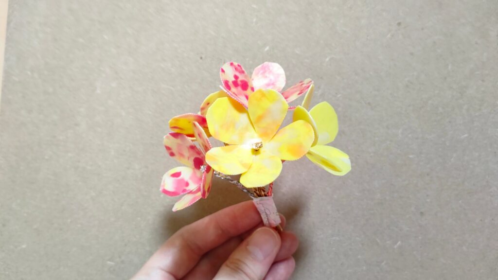 ミニチュア花束風です。針金の茎部分も隠れていい感じになりました!